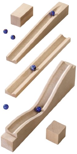 HABA 3558 - HABA 3558 - First down and then up again! The ball needs lots of verve for the bump ramp. Contains 1 bump ramp, 1 rectangular block, 1 cube, 1 straight track, 1 ramp, 6 marbles. Recommended for ages 3 - 10 years. Made in Germany.