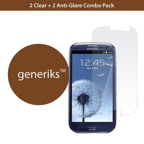 *4 PACK CLEAR & ANTI-GLARE* Generiks Screen Protector Film for Samsung Galaxy S III S3 i9300 (AT&T, T-Mobile, Sprint, Verizon) - (Combo Pack) 2 Clear & 2 Anti-Glare Review